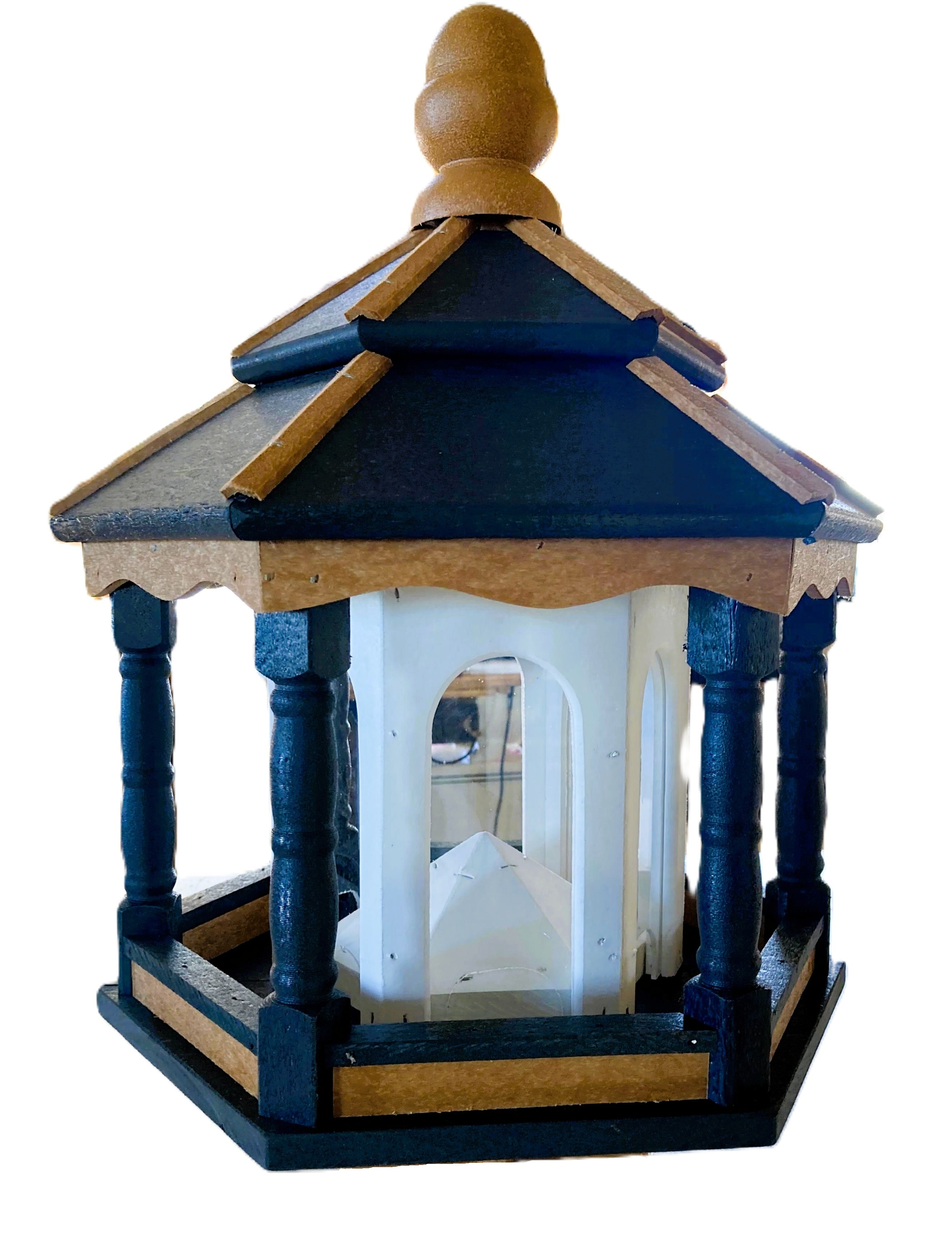 Hexagon Poly Bird Feeder Black, Cedar, and White